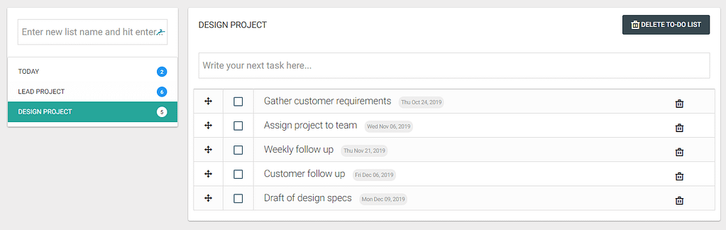 Really simple to-do lists.  Just start typing and hit enter.  Assign due dates.  Drag and drop to reorder.
